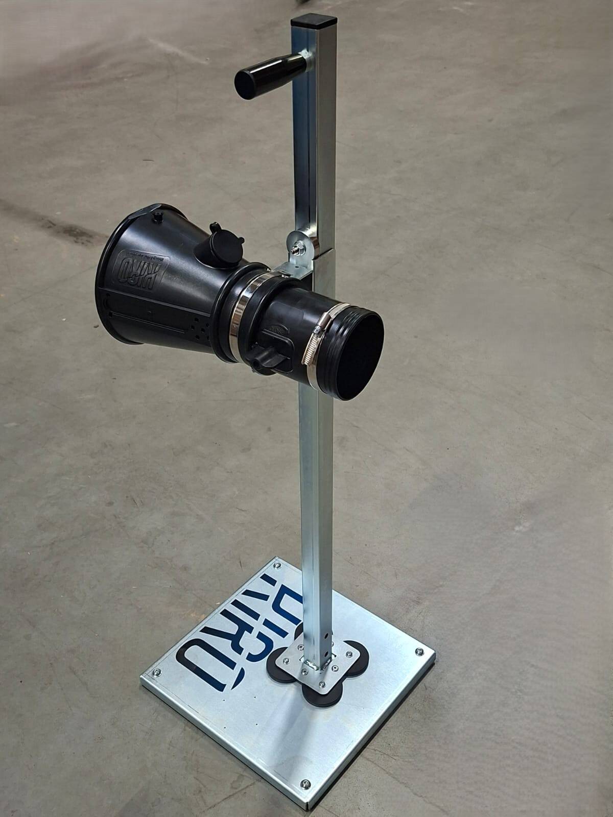 Regulowany stojak podłogowy pozwala dopasować większość pozycji rur wydechowych i konstrukcji.