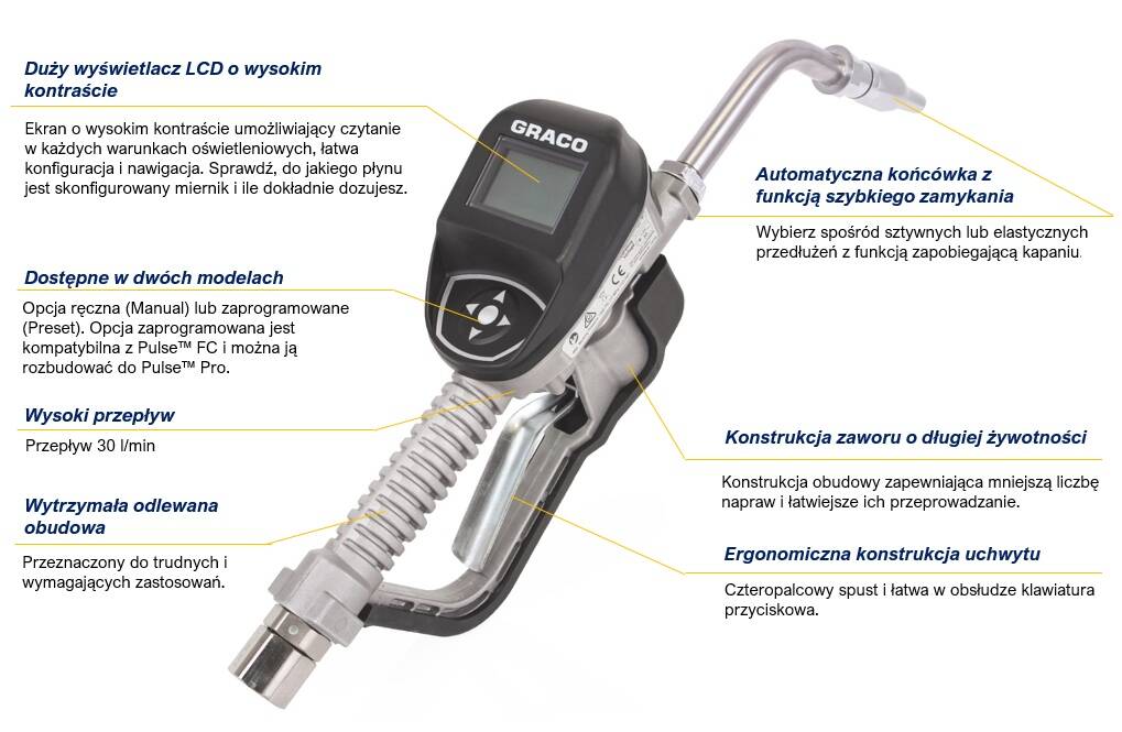 Pistolet dozujący z licznikiem elektronicznym– serii SDM8 GRACO – wylewka elastyczna.
